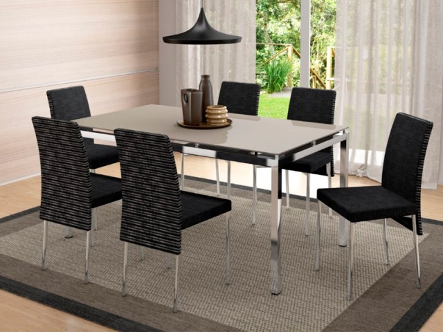 Tablero vidrio negro templado (8 mm.), armazón cromado.