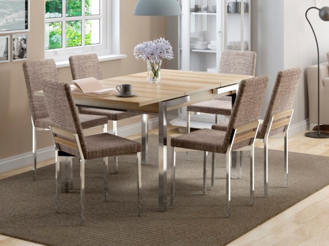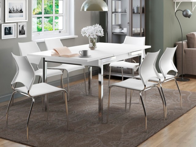 Con tablero extensible, es una excelente solción para espacios pequeños. Cerrada, acomoda a 4 personas. Abierta, queda con 6 lugares.