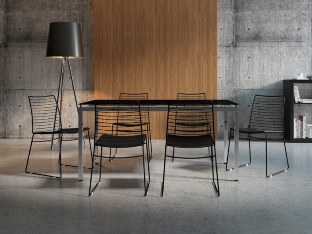 Tablero vidrio negro templado (8 mm.), armazón cromado.